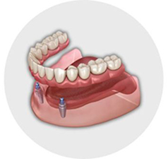 The denture sits on your implants and gums, and you can still take the denture out of your mouth.